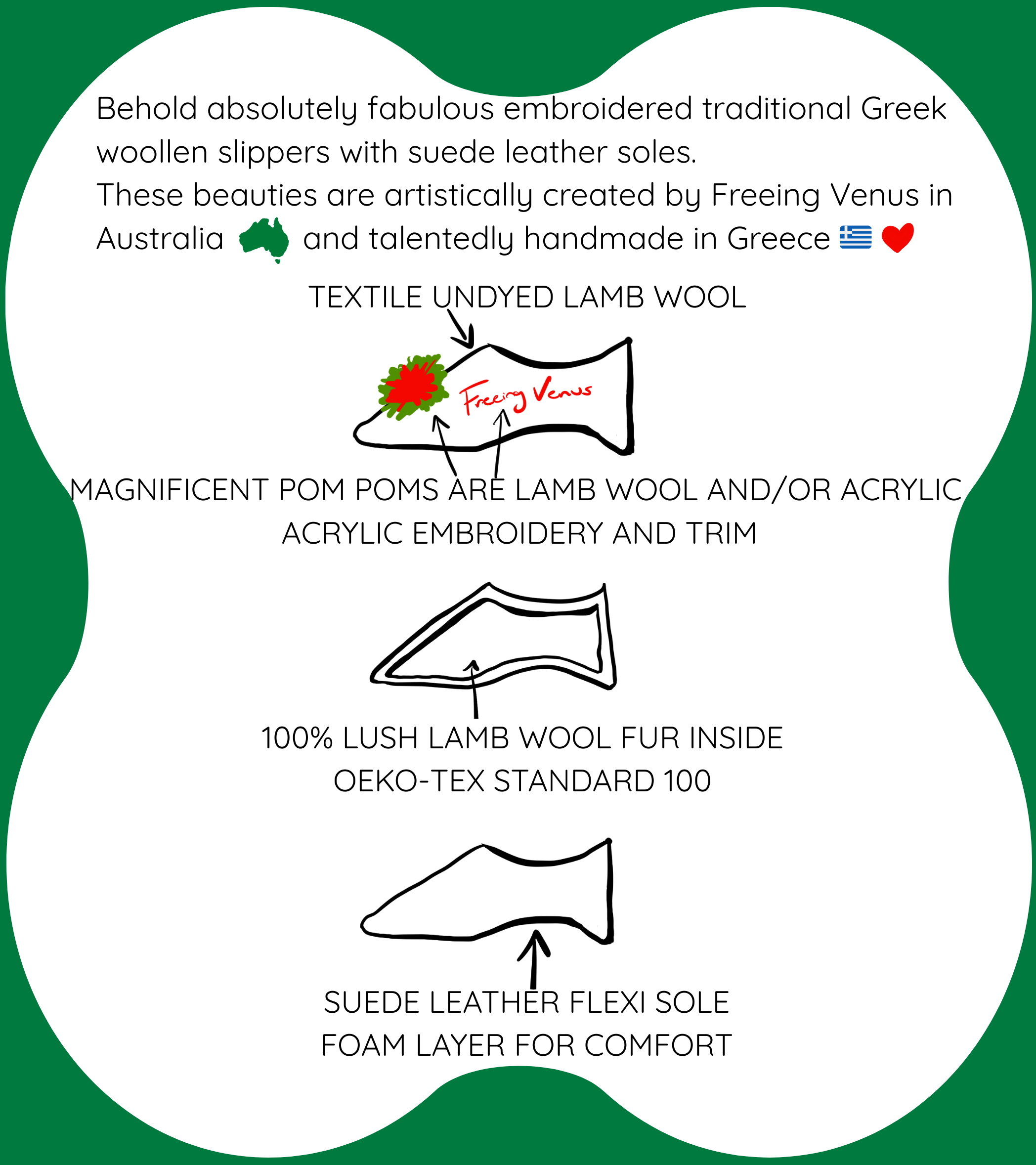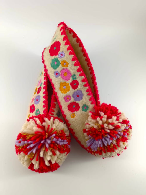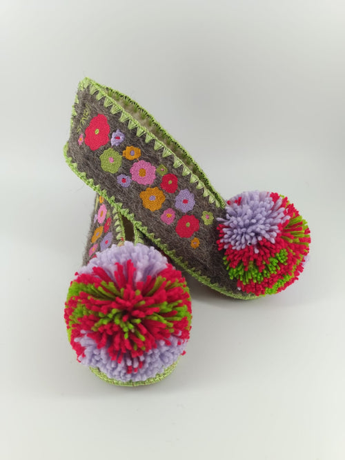Handcrafted woollen slippers with high quality machine embroidery
